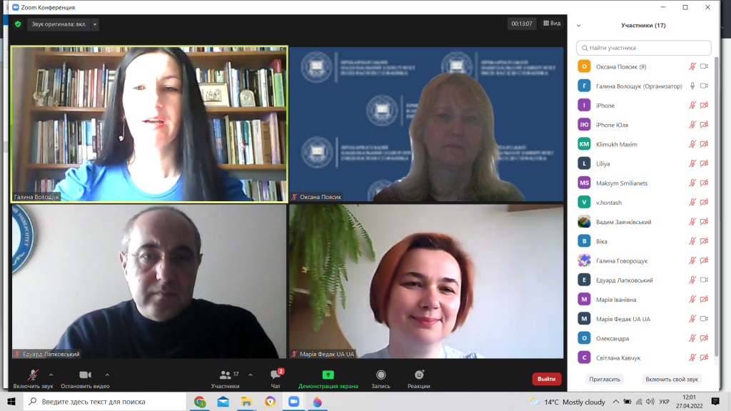 27.04. 2022 відбулася перша онлайн-конференція “Особливості вступу 2022. Що змінилося?” в рамках проєкту «Обери своє майбутнє», який здійснює Прикарпатський національний університет імені Василя Стефаника (м. Івано-Франківськ) для учнів 11 класів, вчителів ліцеїв Городенківської ТГ. З умовами Вступу 2022 року всіх присутніх ознайомили провідний фахівець з Читати далі